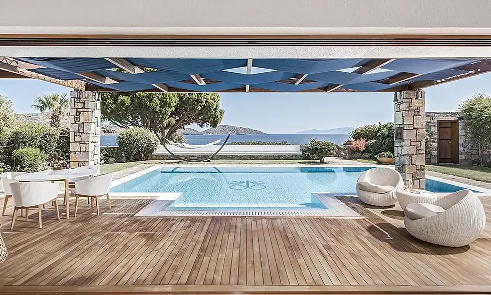 "Elounda Beach Hotel & Villas stands as an iconic testament το Greek hospitality, nestled along Crete's coveted coastline on the island’s northeastern side. Expanding along 40 acres it seamlessly blends classic with modern minimalist elegance, while offering waterfront suites, bungalows and villas with private heated pools and sublime surroundings."